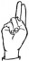 На ћирилици написано ТИОДОР КОЖОВАЦ састоји се из 13 слова [?]. Исписано ћириличном једноручном азбуком за глувонеме: